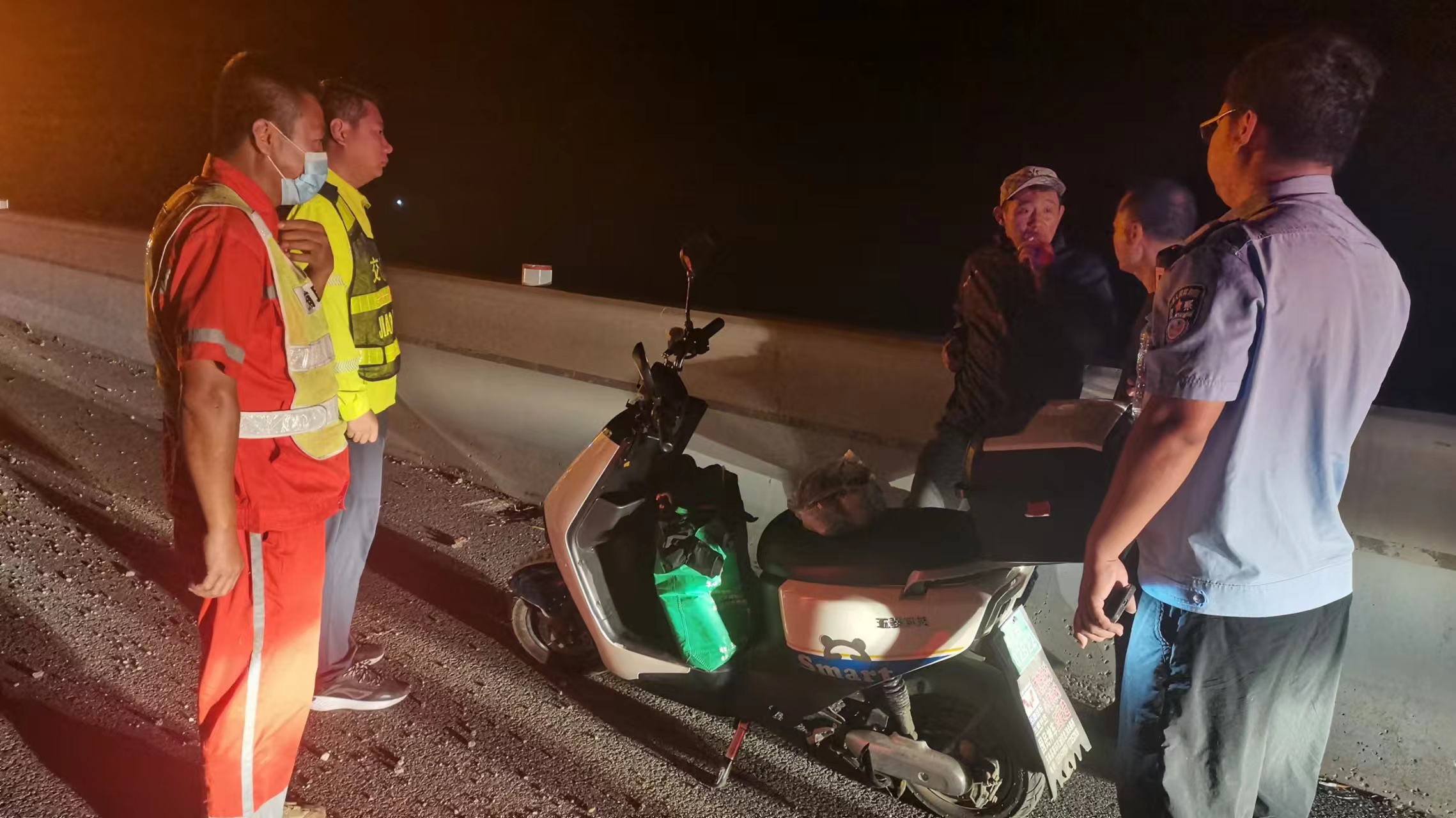 “一男子骑电动车在京秦高速K135附近徘徊,十分危险,我们已经报警,请你们应急大队前往现场寻找该男子并马上带他离开高速!”2023年8月28日凌晨0:58分,信息调度中心人员在电话中说道。
