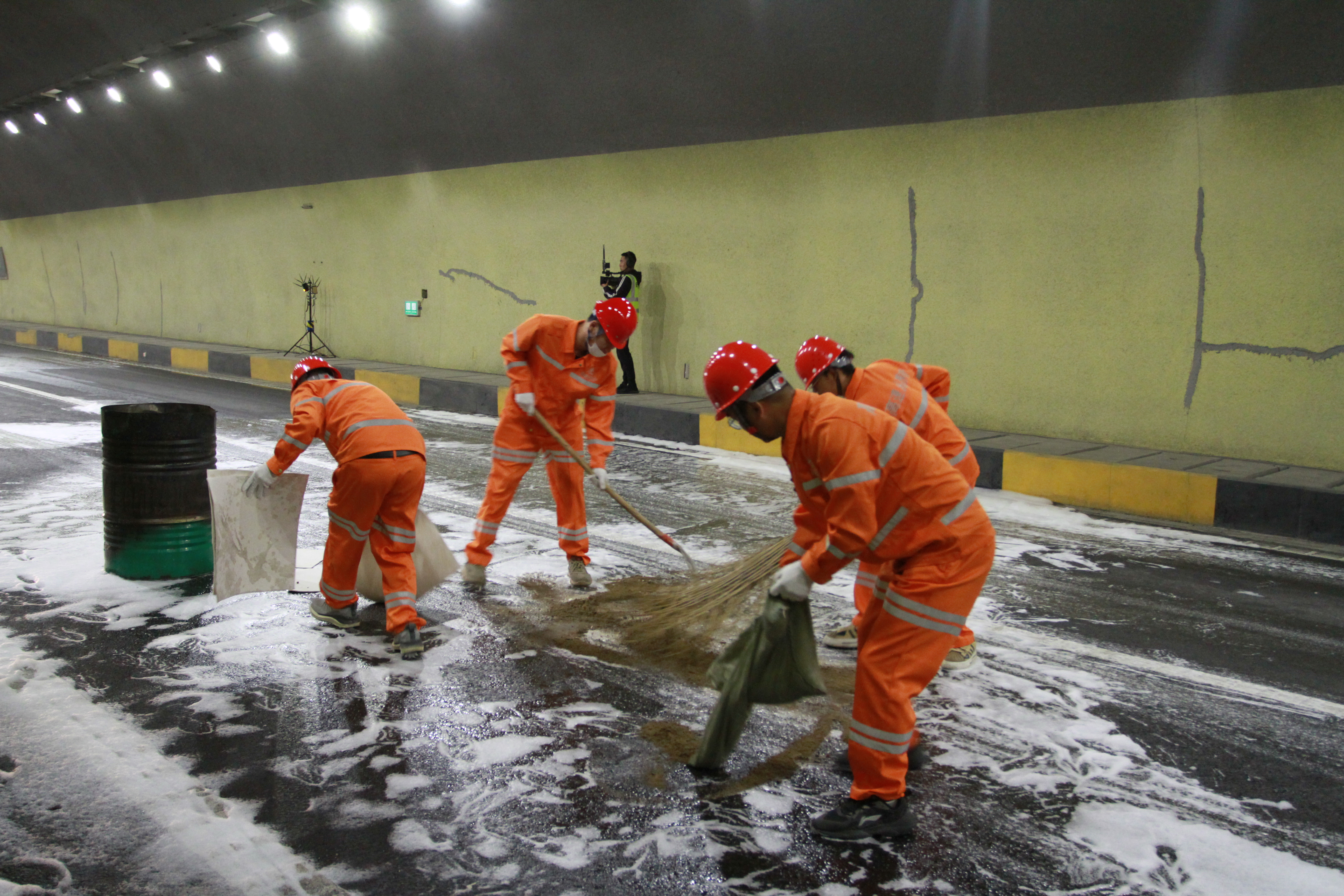 9时20分,事故现场明火扑灭,高速交警迅速对事故现场进行戡验定责,保通保畅应急大队进入隧道对事故车辆戡验定损,道路清障车对事故车辆进行拖离。养护、机电等部门对隧道设备设施进行查看,同时开展隧道清理、清扫工作。