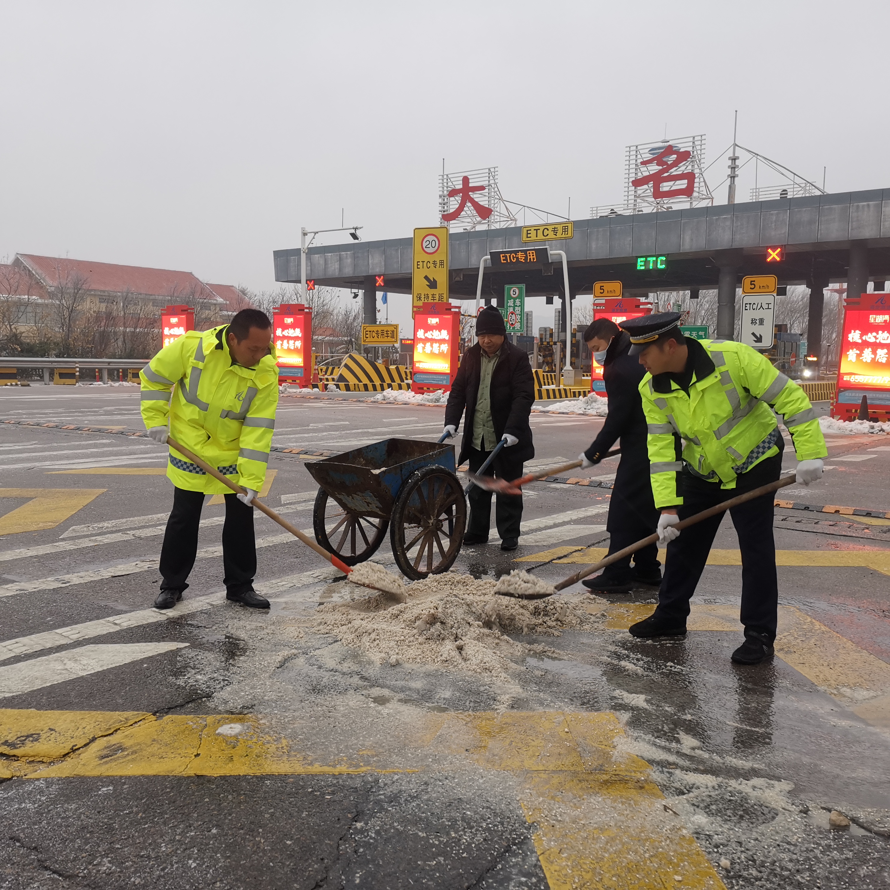 据气象台预报,邯郸地区普降大雪,大名收费站多项措施,积极做好降雪和持续低温天气应对工作。