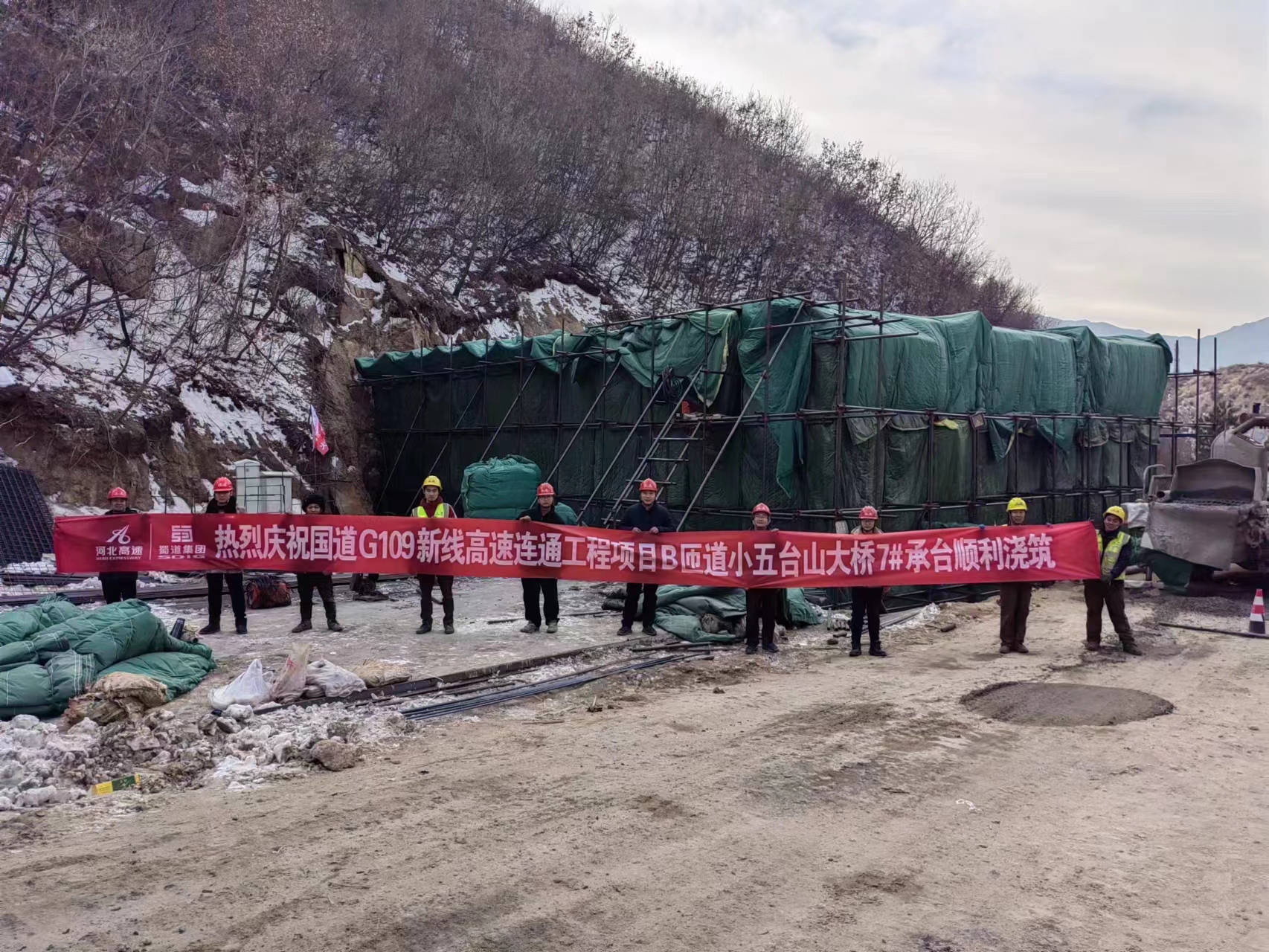 桥梁施工和小龙门隧道施工现场机器轰鸣,车辆穿梭,人头攒动,焊花四溅,施工人员正在有序推进工程建设。特别是B匝道小五台山大桥7#主墩承台于12月30日顺利完成浇筑,标志着桥梁施工取得突破性进展,在冲刺年度目标任务进程中迈出关键一步。