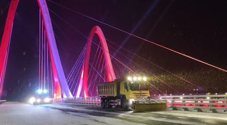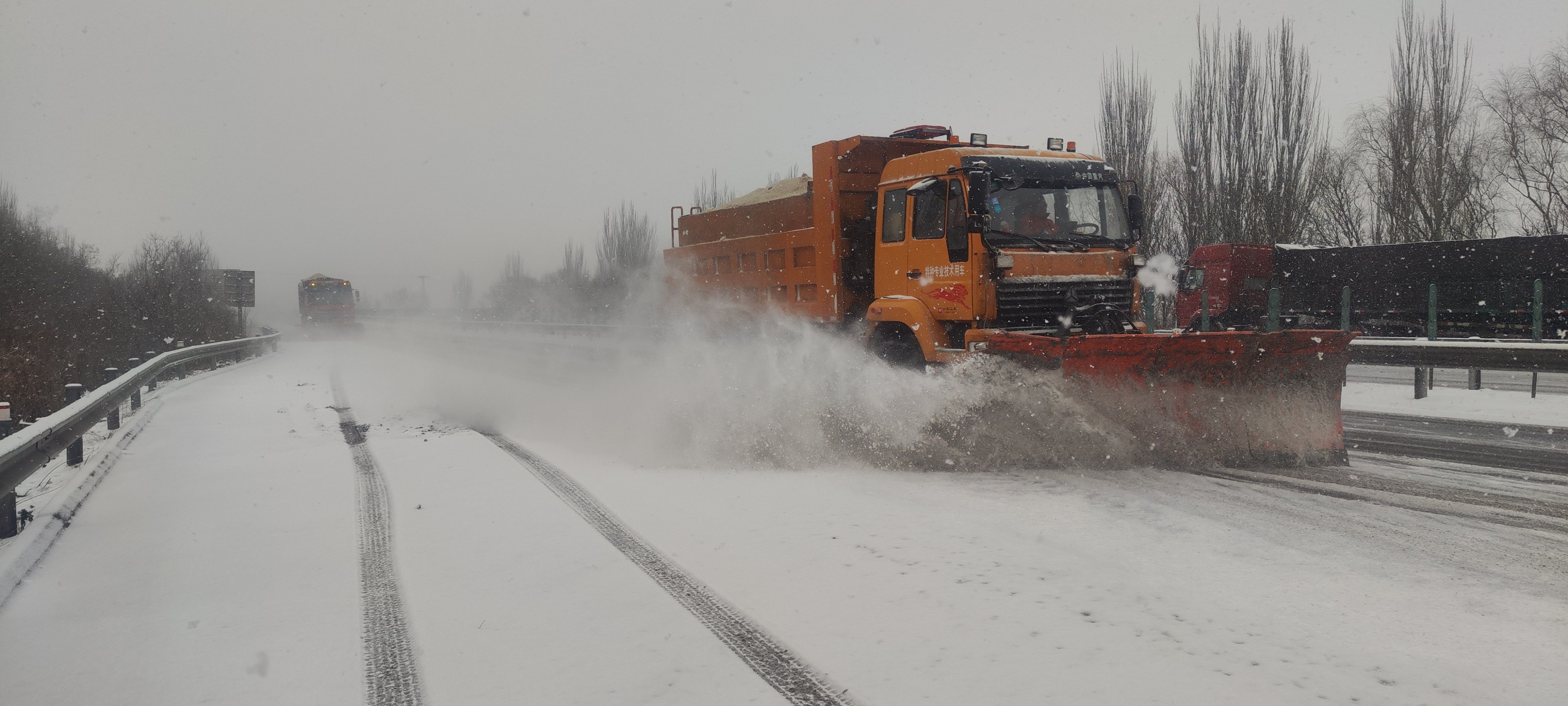 张家口分中心7个养护队第一时间按照“以雪为令、随下随除、雪停路净”的原则,全面开展除雪作业。分中心主要负责人和各养护队长“靠前指挥”,在特殊路段提前撒布融雪剂,在降雪重点区域采取“梯队作业+边推边撒”的方式,对各路段积雪进行集中清理,同时加强与各路段分公司、高速交警、高速路政、保通保畅中心“多方联动”协作,提高除雪速度,多方联动启动“压车带路”,确保高速公路第一时间达到安全通行条件。