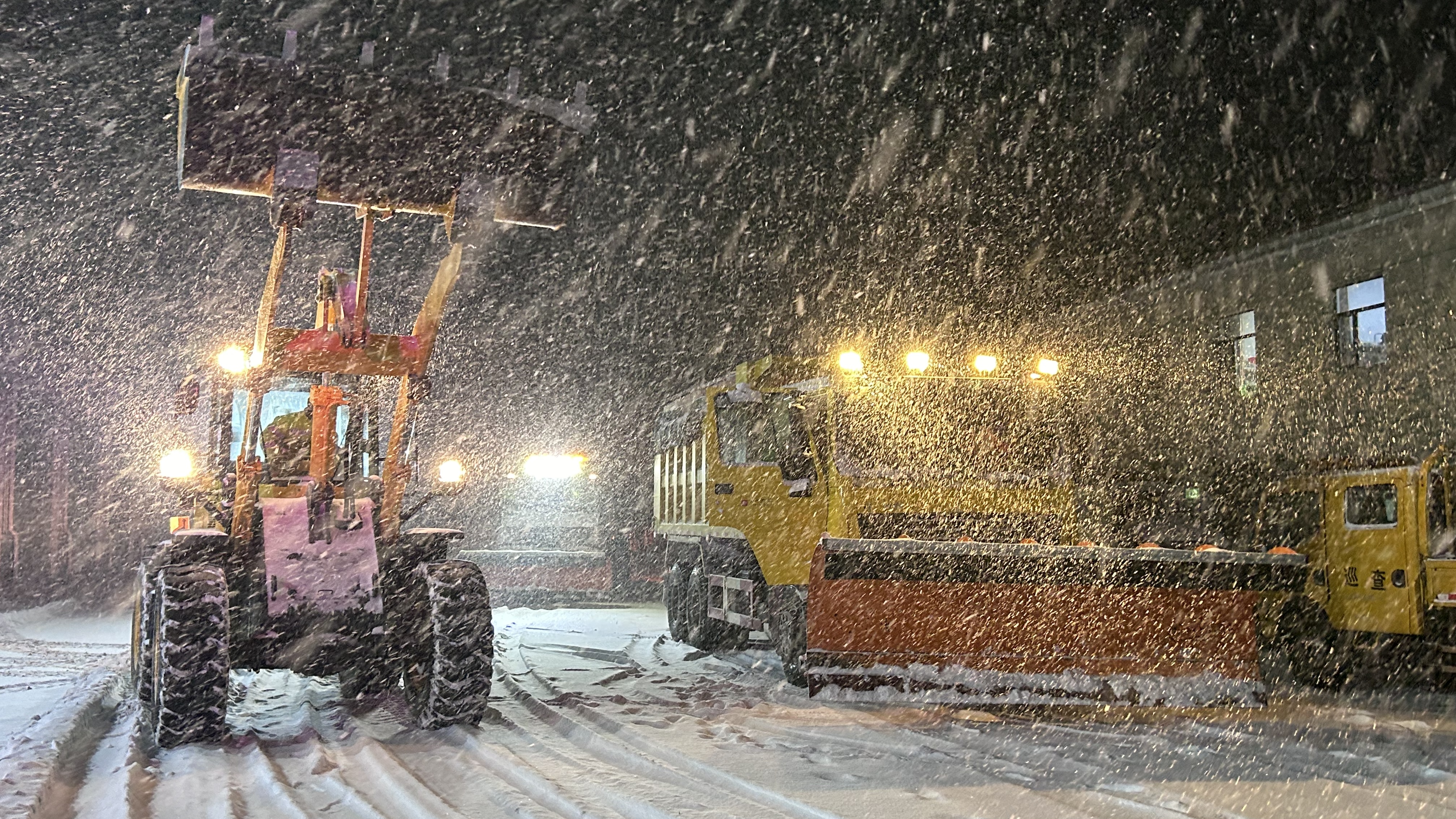 一场大雪,一夜集结,一场战斗。此次除雪,养护分公司全体干部职工继续发扬艰苦奋斗精神,用实际行动扛起了国企责任、彰显了使命担当。全体人员严阵以待,24小时值班值守,党员干部充分发挥模范带头作用,全体人员不畏艰辛、连续作战。截至21日上午本次除雪养护分公司累计投入人员2200工日,出动除雪撒布车、装载机等各类机械设备729.5台班,撒布融雪剂7800吨。
