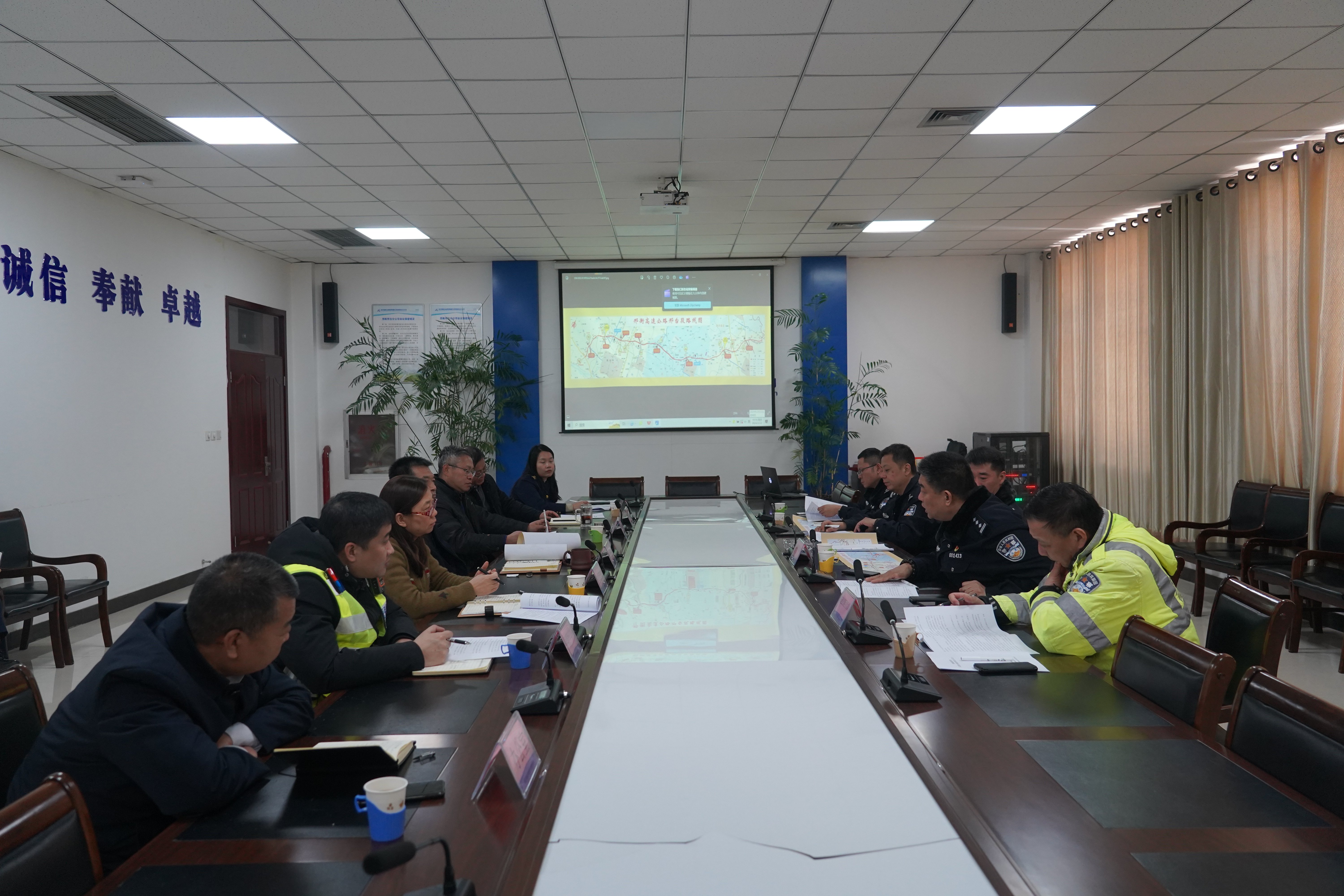 为全力打造邢衡高速邢台段全天候通行,实现安全畅通、便捷有序、运营高效的管理和服务目标,2月22日上午,邢衡高速邢台段召开打造准全天候通行实施方案研讨会。高速交警邢台支队支队长何军辉、副支队长何超,巨鹿大队大队长田云峰,分公司党委书记、总经理徐春松,副总经理陈翔及分公司相关部室负责人参加会议。