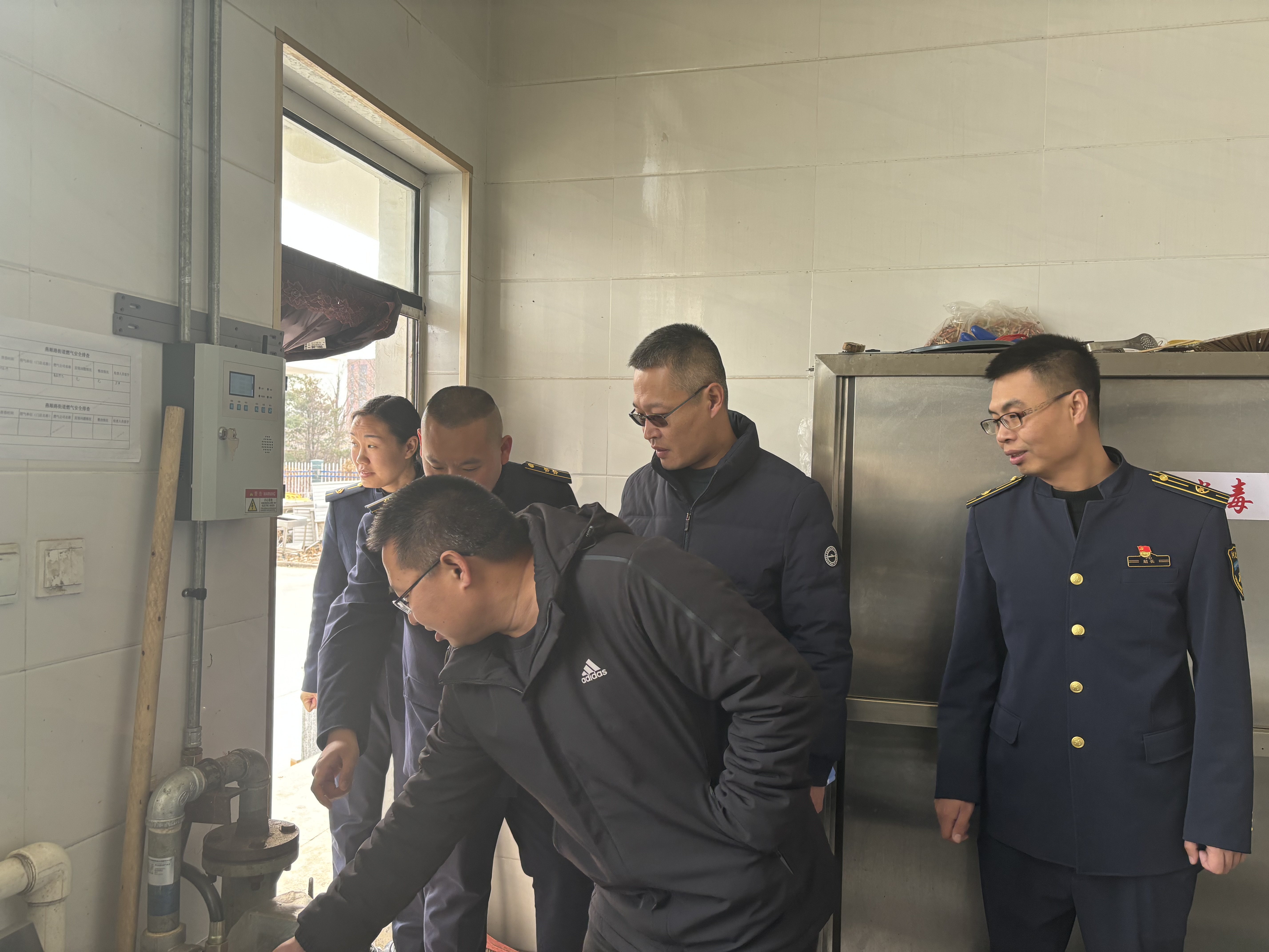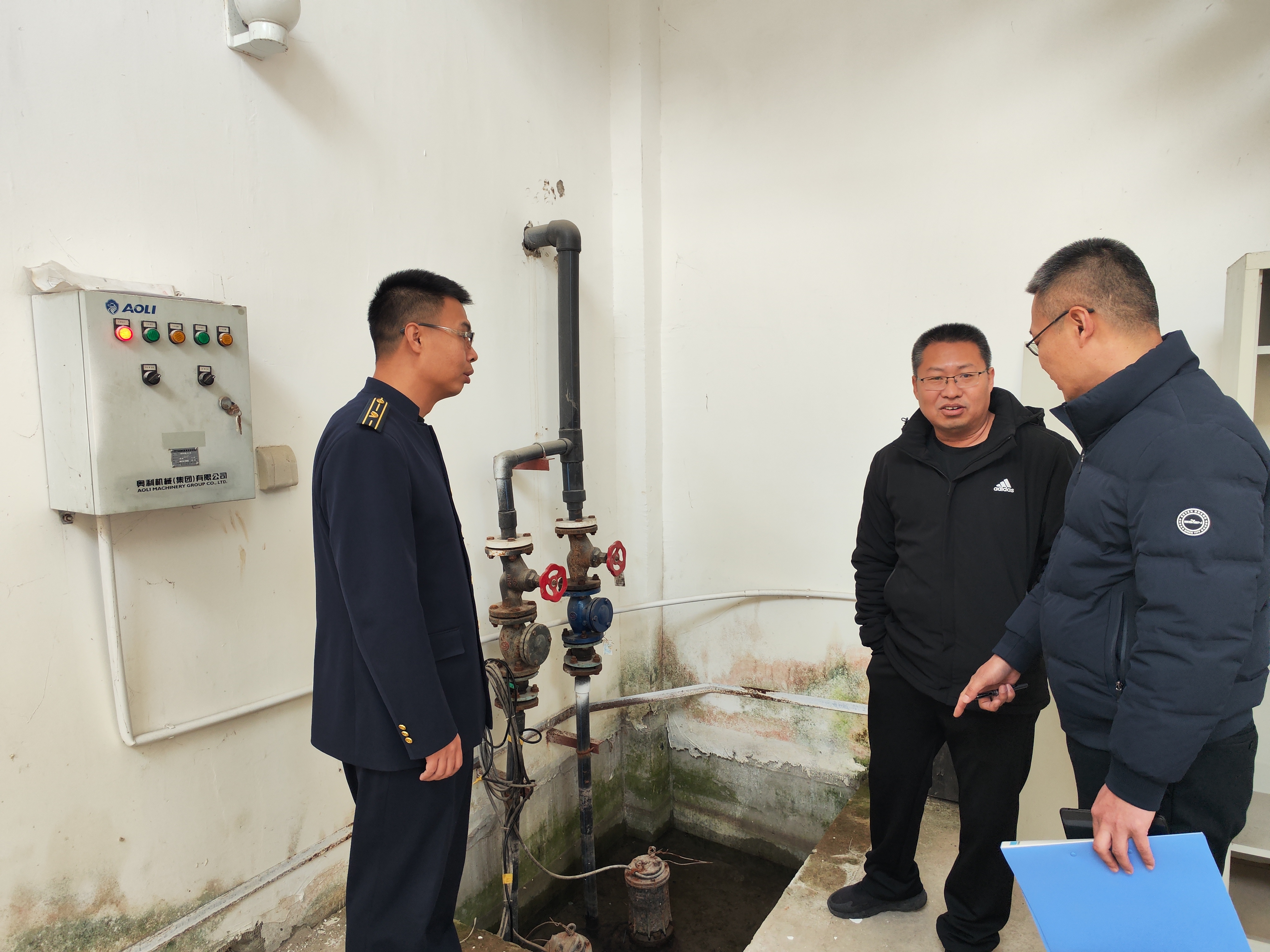 盖晖晖一行实地查看了地源热泵房、发电机房、水泵房、食堂等区域,认真听取了燕郊收费站各项工作贯彻落实情况,详细了解了水泵房水位监测系统、发电机房设备运行以及食堂燃气报警器使用情况等各项安全工作,对“两会”期间安全工作给出了指导性意见。