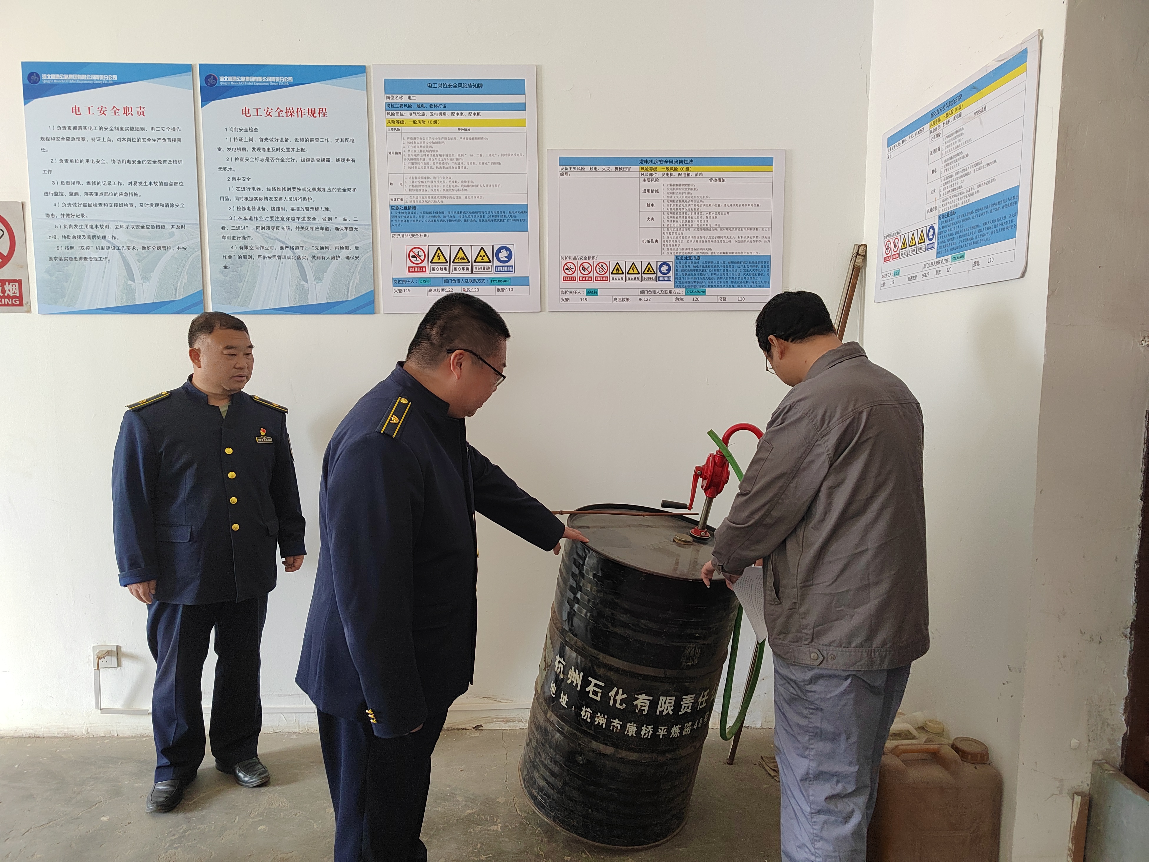 排查小组对食堂操作间、锅炉天然气使用情况、发电机房燃油存储情况、宿办区和生活区用电情况及各区域消防设施、灭火器、消防疏散通道进行逐一排查,重点检查了两处天然气使用场所的天然气管道、接口是否有不符合规定的私接问题,检查了燃气报警器线路是否正常;检查组还对宿办区的用电安全和消防设施配备情况进行了检查,确保用电及消防设施正常使用。