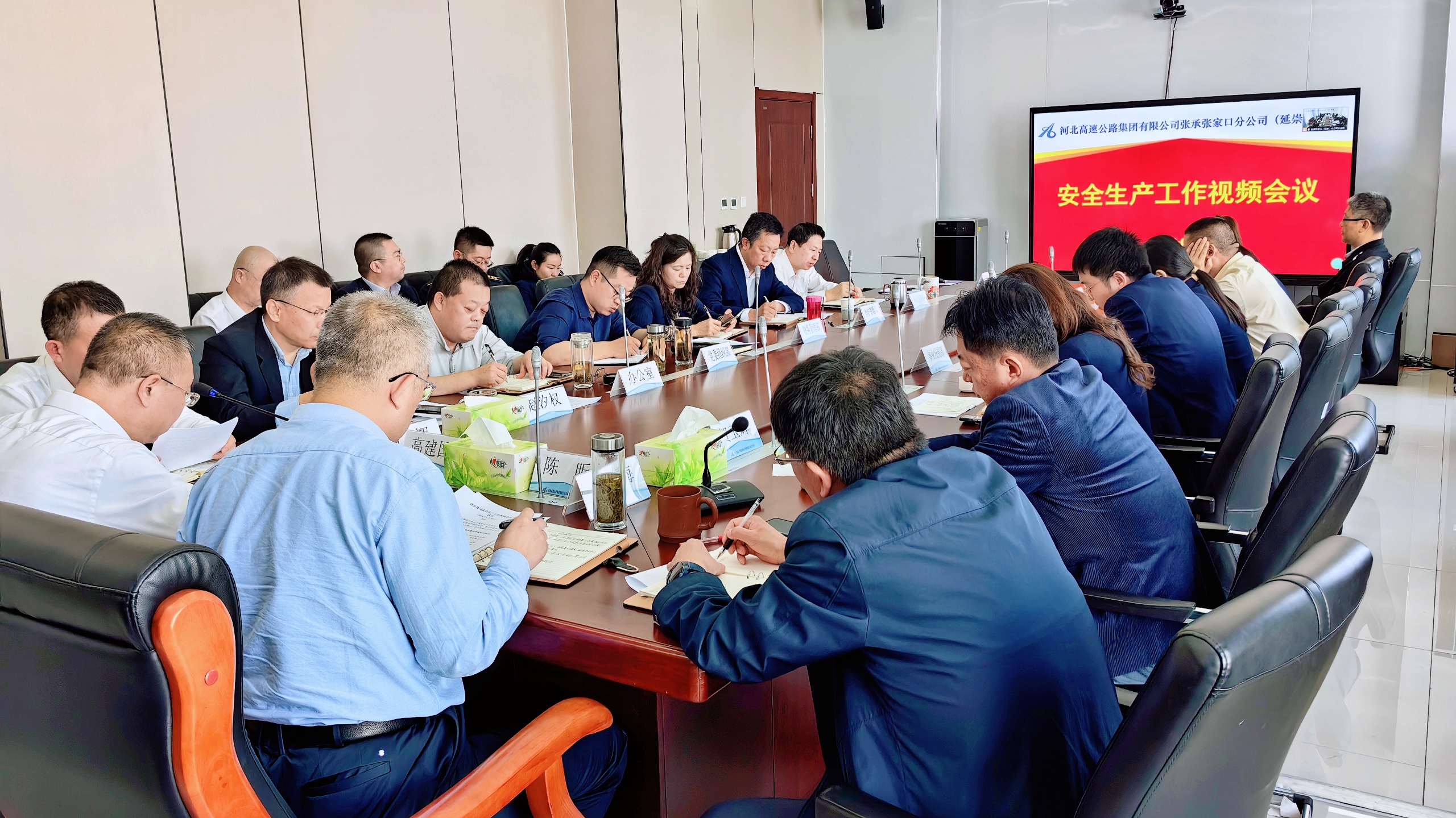 4月16日,张承张家口分公司(延崇分公司)召开安全生产工作视频会议,深入贯彻落实省委、省政府决策部署,严格落实省交通运输厅和集团公司工作要求,深刻汲取事故教训、全面分析当前形势,进一步安排部署近期安全生产工作。分公司领导班子,各部室、直属单位主要负责人在总部参会;各收费站、隧道管理站、保通保畅应急大队主要负责人、各养护班组班股长视频参会。