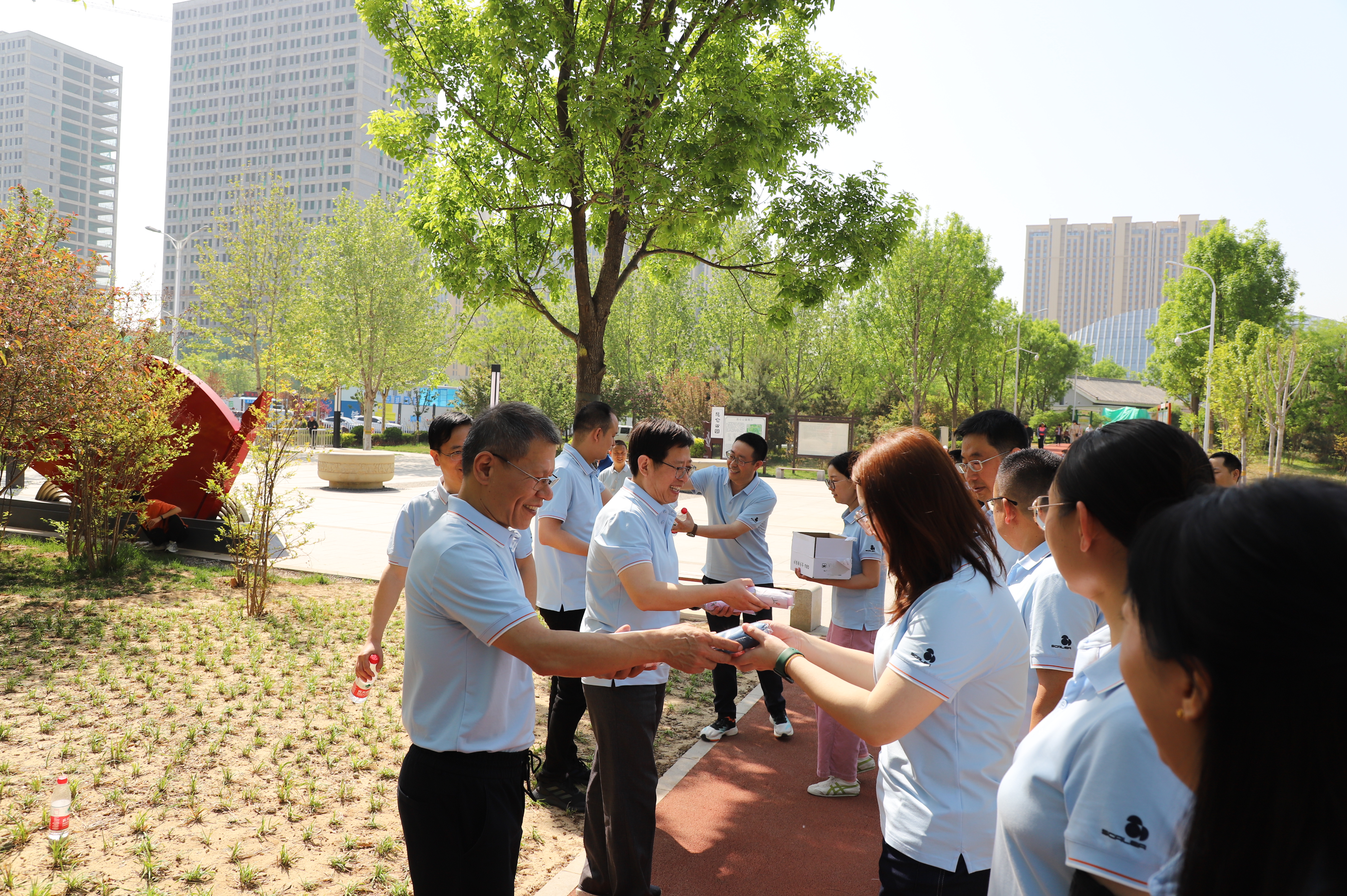 此次活动地点位于石家庄市高新技术开发区昆仑公园,全程6公里,上午9:30全体参与人员到达昆仑公园东门,公园内绿意盎然、鸟语花香、空气清新,大家呼吸着清新的空气,感受着自然阳光的美好,你追我赶,相互鼓励,整个健步走活动气氛轻松活跃,活动结束后,领导班子成员为规定时间内到达终点的员工颁发了奖品。