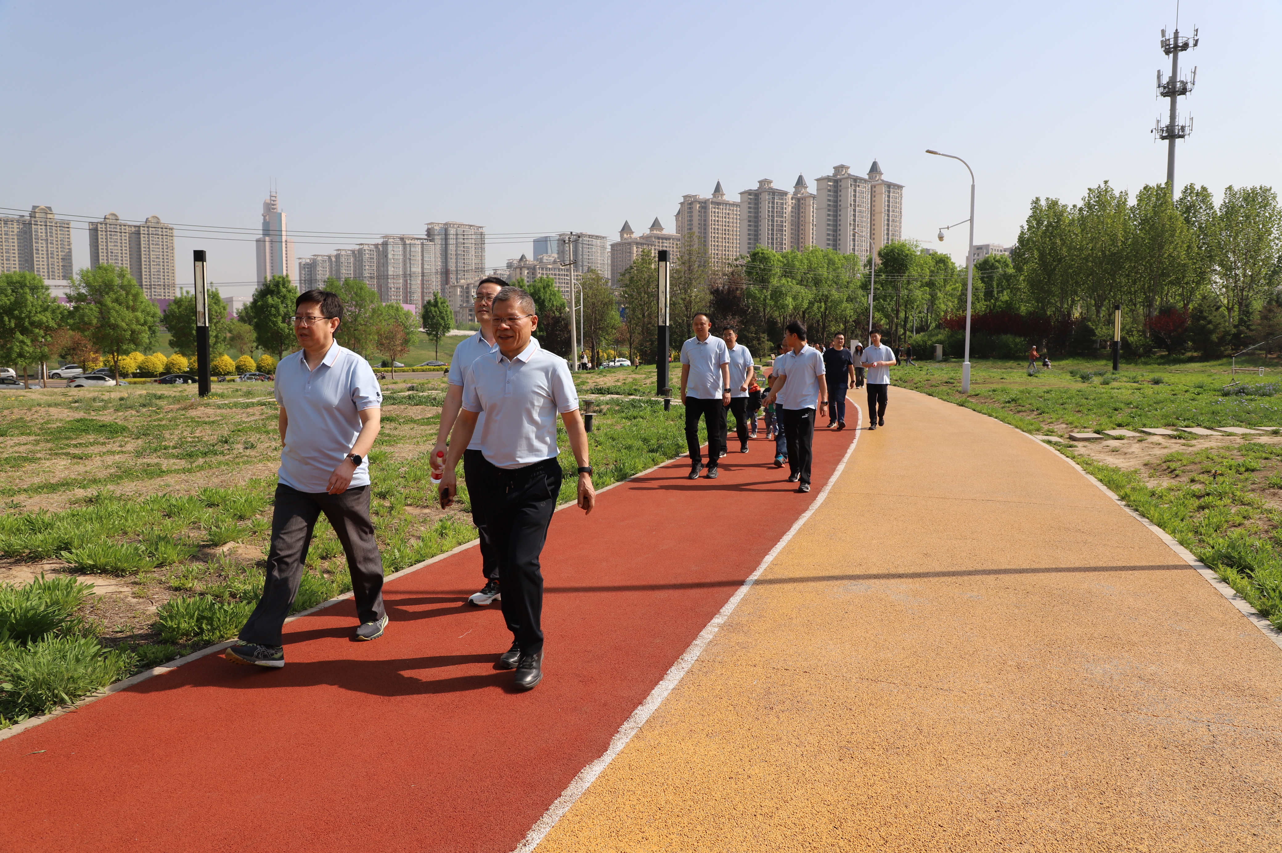 芳草渐茂绿成荫,万物竞荣皆向新。为丰富干部职工的文化生活,倡导健康生活方式,展现工程咨询公司“团结、合作、进取”的精神风貌。4月17日上午,工程咨询公司举办“遇‘健’美好,梦想同行”健步走活动,公司领导班子成员、总部各部室共计二十余名干部职工参加此次活动。