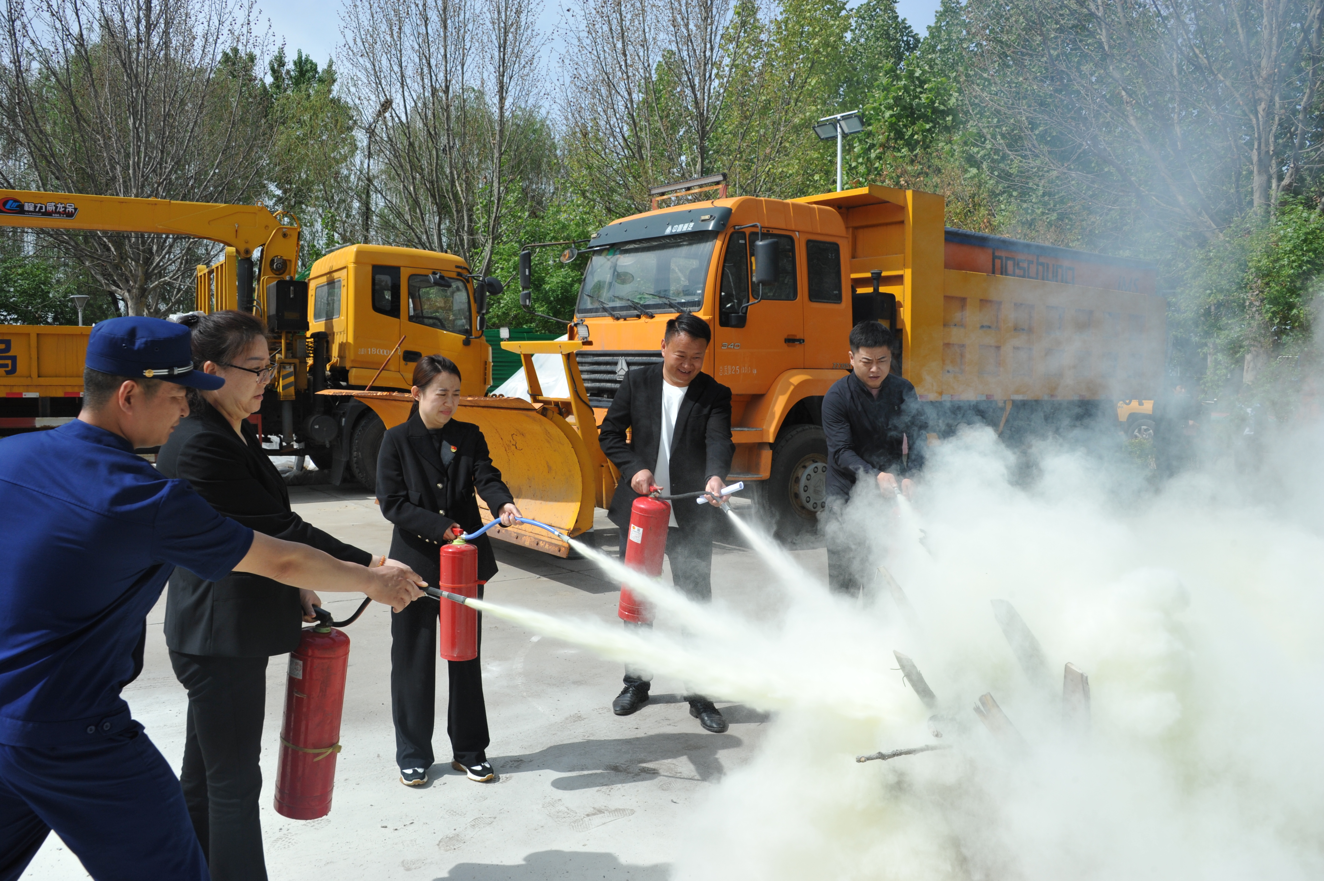 “一提二拔三瞄四喷,这是使用灭火器的流程……”“报警电话要简明扼要,说清楚火灾发生地、火势大小等情况……”“楼体内发生火灾时,切记不要乘坐电梯,用湿毛巾捂住口鼻,弯腰沿墙体边缘快速逃生……”来自消防队的教官详细、生动地讲解火灾预防常识、初期火灾快速扑灭、电器设备着火扑救、自救逃离措施等防火常识和消防知识,干部职工也“零距离”体验了操作灭火器灭火。