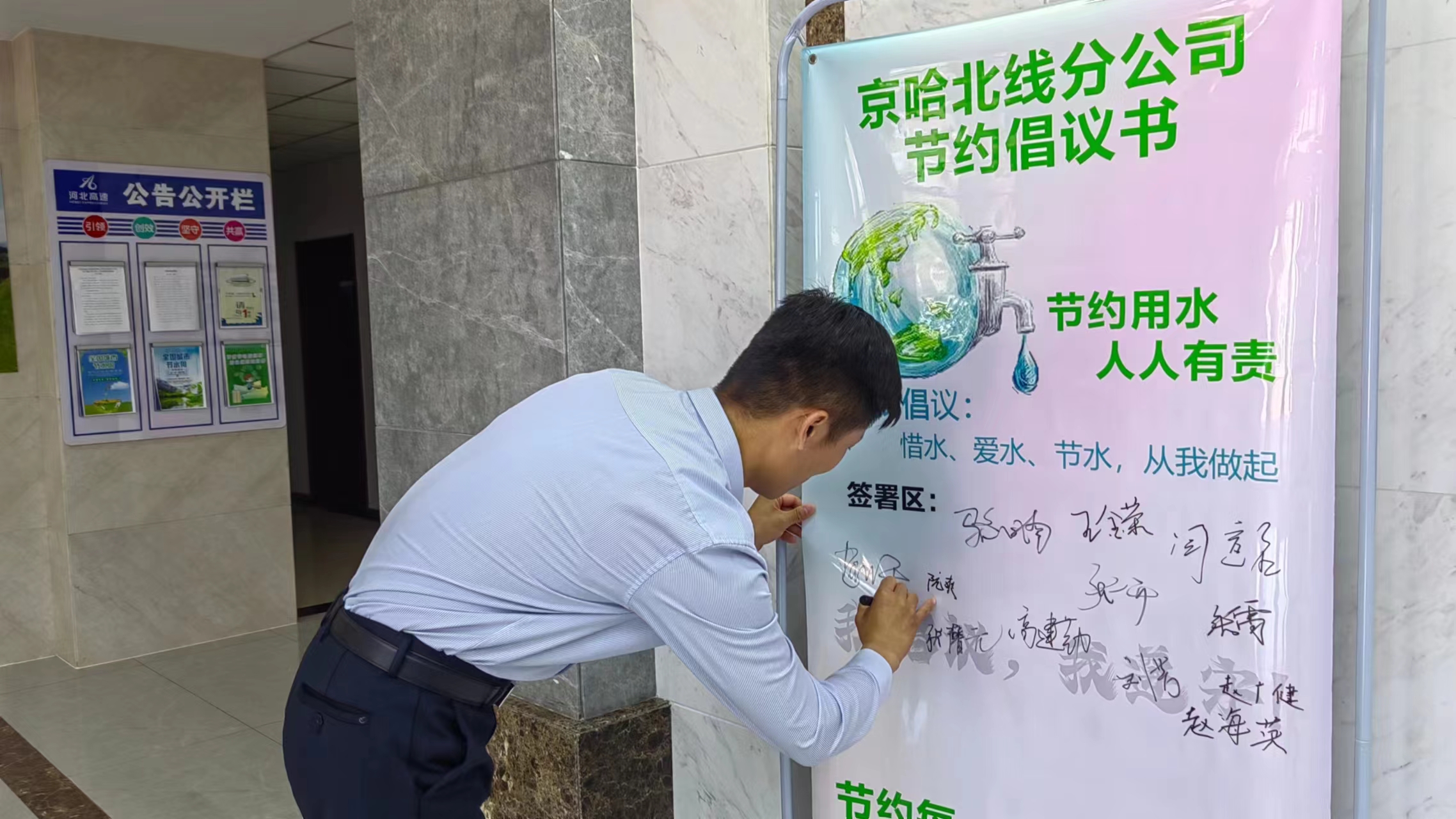 加强节能宣传,全面掀起热潮。将节能工作转化落实到日常工作和生活中,在水龙头前张贴“节约每滴水”、在照明灯开关上张贴“减少照明、节约用电”、在打印机上张贴“正反打印”等温馨警示语,大力倡导随手关灯、随手断电、绿色出行、空调节能等节约行为。通过发动宣传、手册学习、媒体推送等形式,在职工中掀起树立节能意识、学习节能知识的高潮,形成从我做起,从现在做起,从身边点滴事情做起的浓厚氛围。