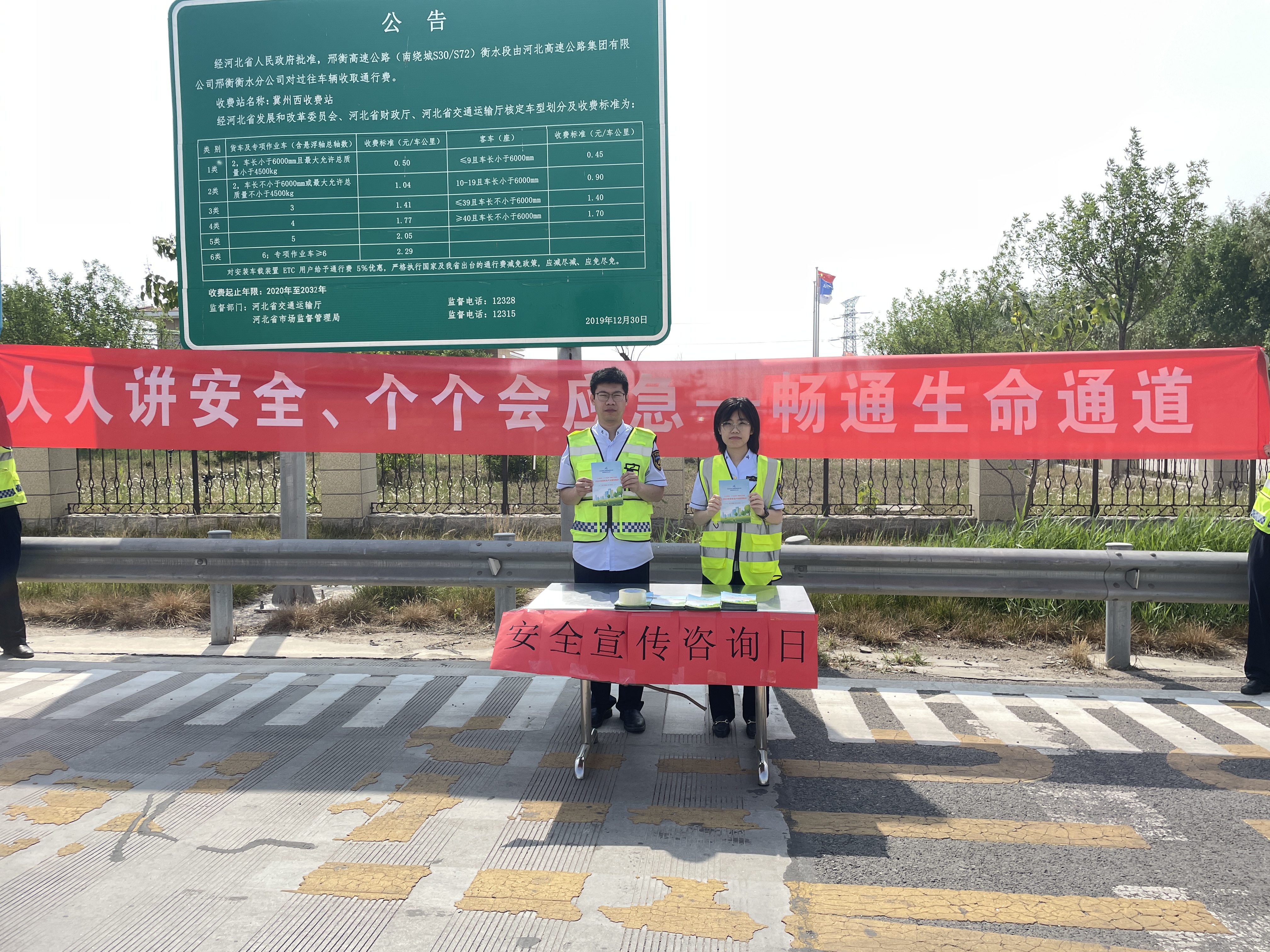此次安全宣传咨询日活动效果明显,共计发放传单500余份,耐心解答司乘咨询100余次,服务司乘2000余人次,为“安全生产月”活动的开展营造了良好的社会氛围。下一步,邢衡衡水分公司将持续开展安全生产专题教育培训、突发事件应急演练等活动,推进“安全生产月”活动有序开展,安全理念深入人心,为河北高速高质量发展提供坚实安全保障。(马代奉)