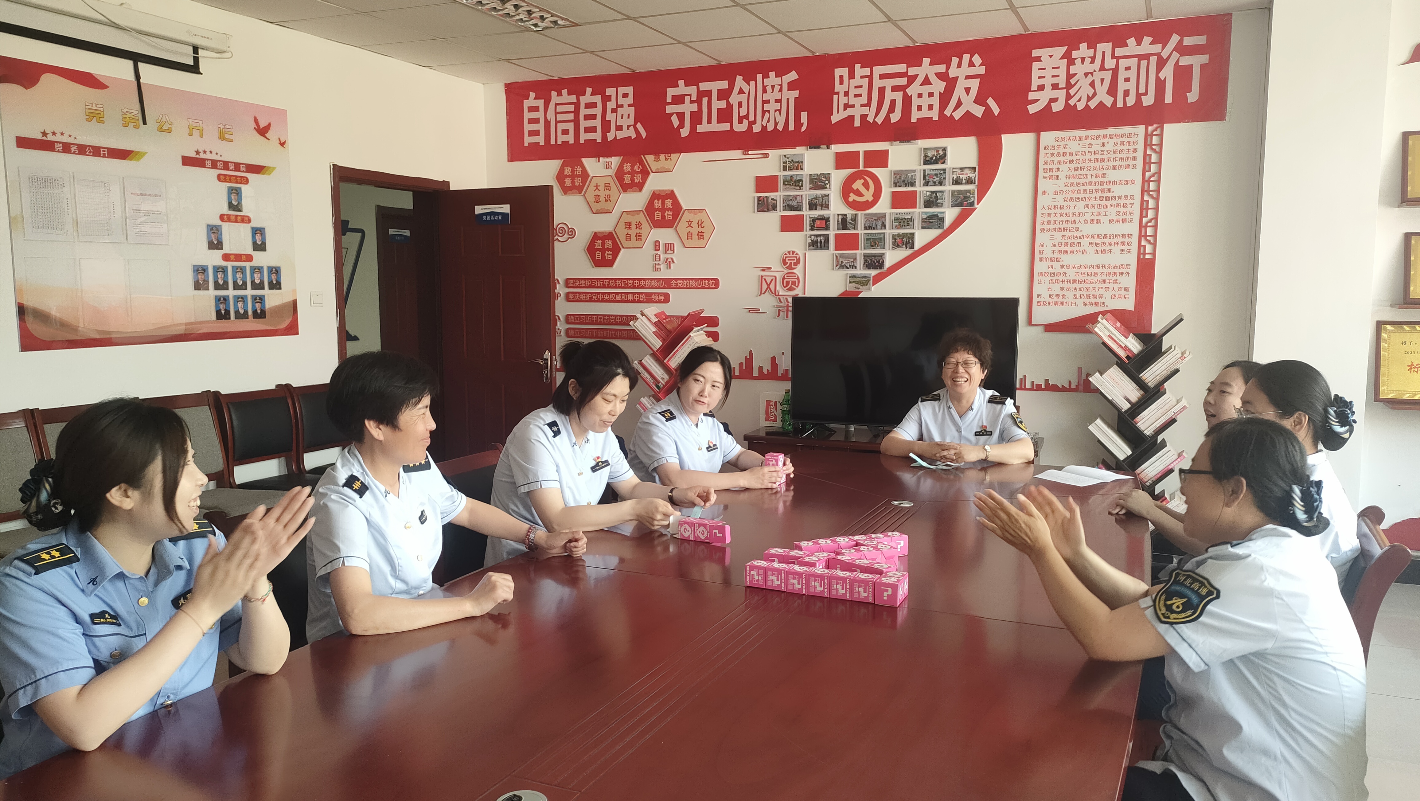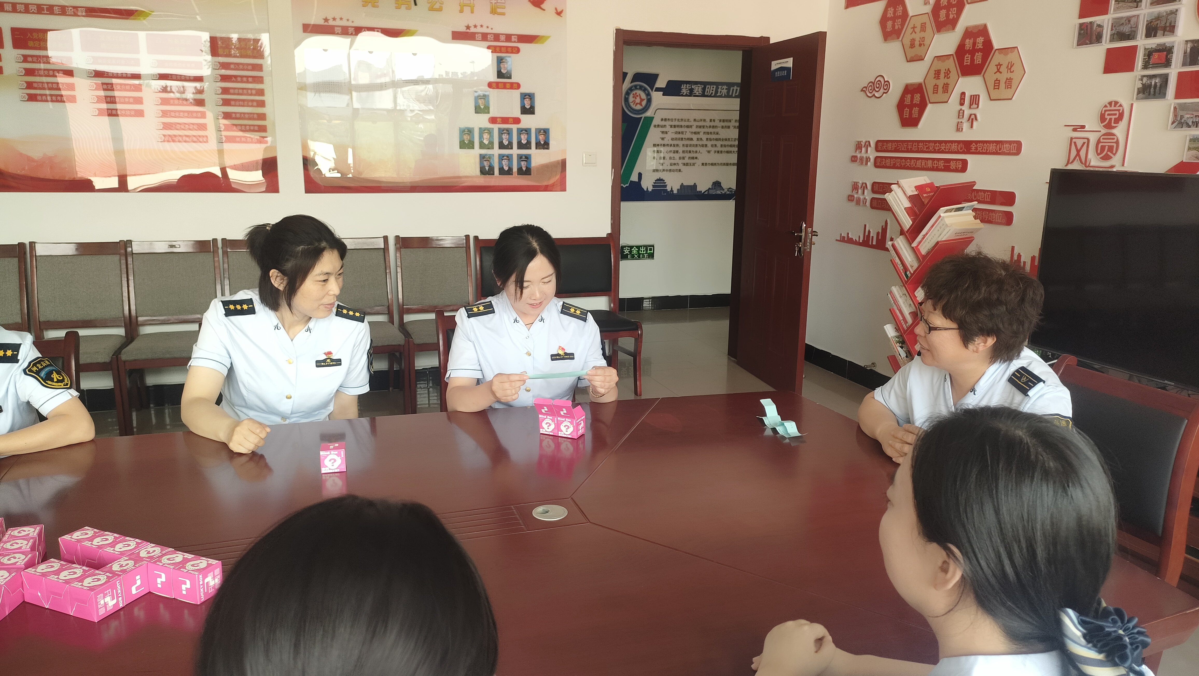 为突出“巾帼行”主题,活动参与者以女职工为主。设30个安全盲盒,盒内藏“玄机”,预先放置了包含双控知识、职业健康知识、安全应知应会知识等内容的题目便笺,每人随机抽取3个盲盒,拆开后回答问题。大家兴趣盎然,满怀好奇的拆开自己的“心选”盲盒,答对的兴高采烈,答错的遗憾啧舌。在愉悦的氛围中,职工们既得到了岗后的精神放松,又学习到了安全知识。