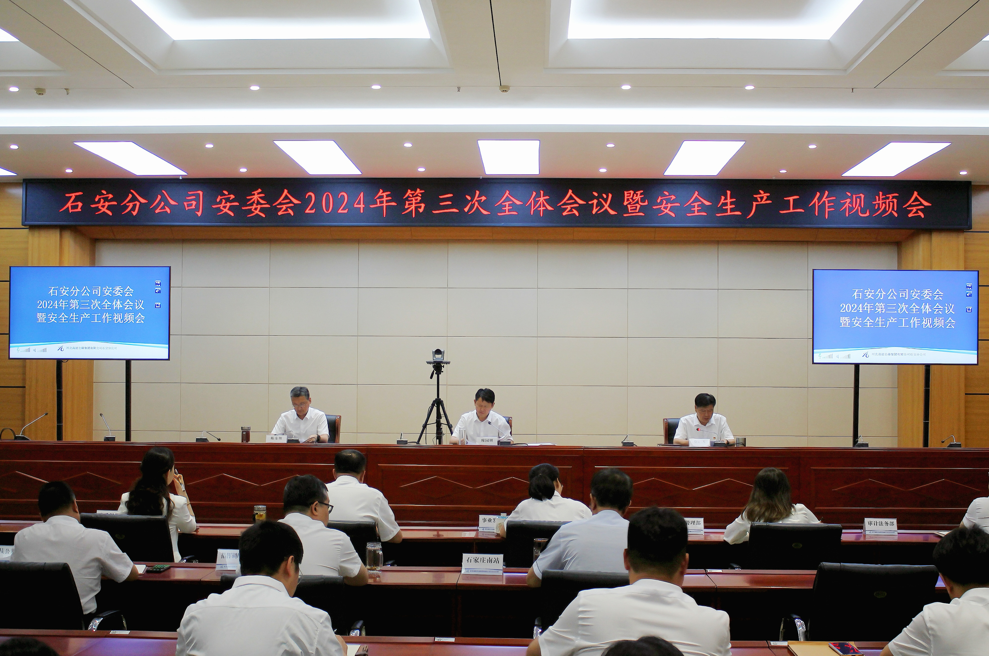 7月11日,石安分公司召开2024年安委会第三季度全体会议安暨全生产工作会,深入学习习近平总书记关于安全生产和防汛工作的重要指示批示精神,传达学习集团公司安委会2024年第三次全体会议暨安全生产工作视频会议精神,通报所属各单位2024年安全生产责任制半年考核情况,全面总结第二季度安全生产工作,分析形势,研究部署三季度重点工作。分公司党委书记陈园明出席并讲话,领导班子成员柴飞、陈东坡出席。