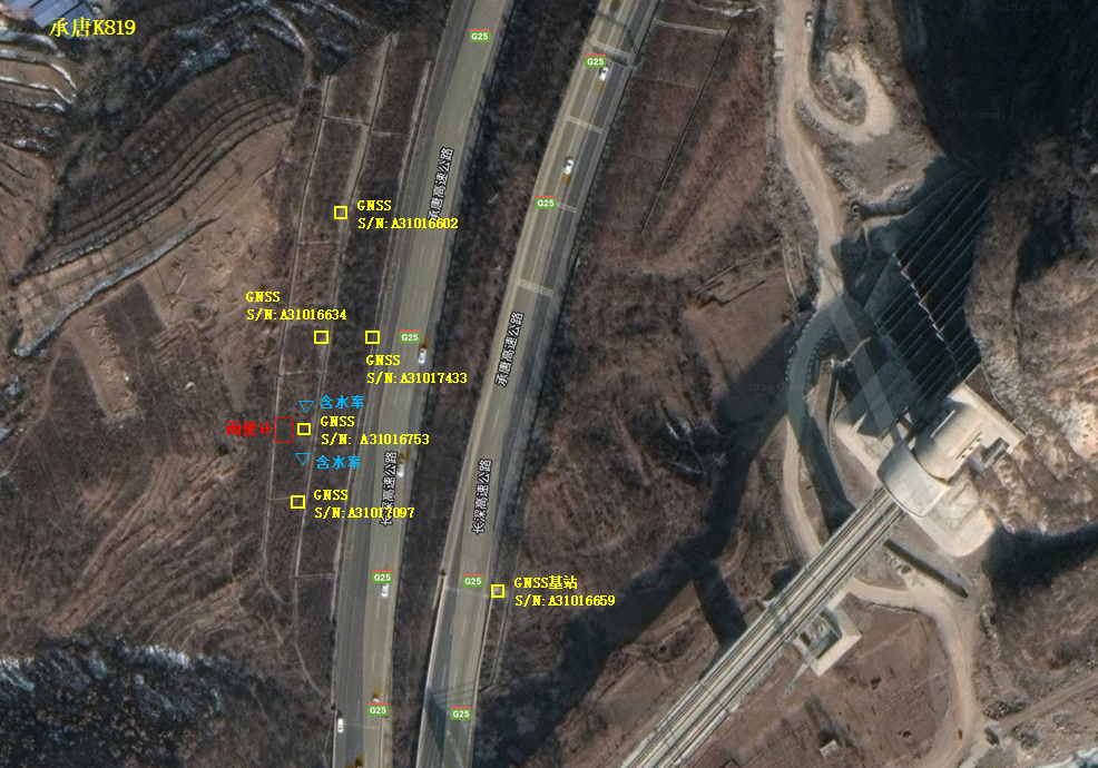 通过多次与设计单位现场勘验,调查边坡地质状况、受力分析、病害类型等内容,最终选取承唐段K819+000、承赤段K1034+100、K1067+600共计3处边坡,安装了11台GNSS监测坡体表面位移设备、1台雨量计和2台浅层含水率监测仪。目前,该项目正在通过三维无人机在监测平台内建立模型图和录入原始各项数据。
