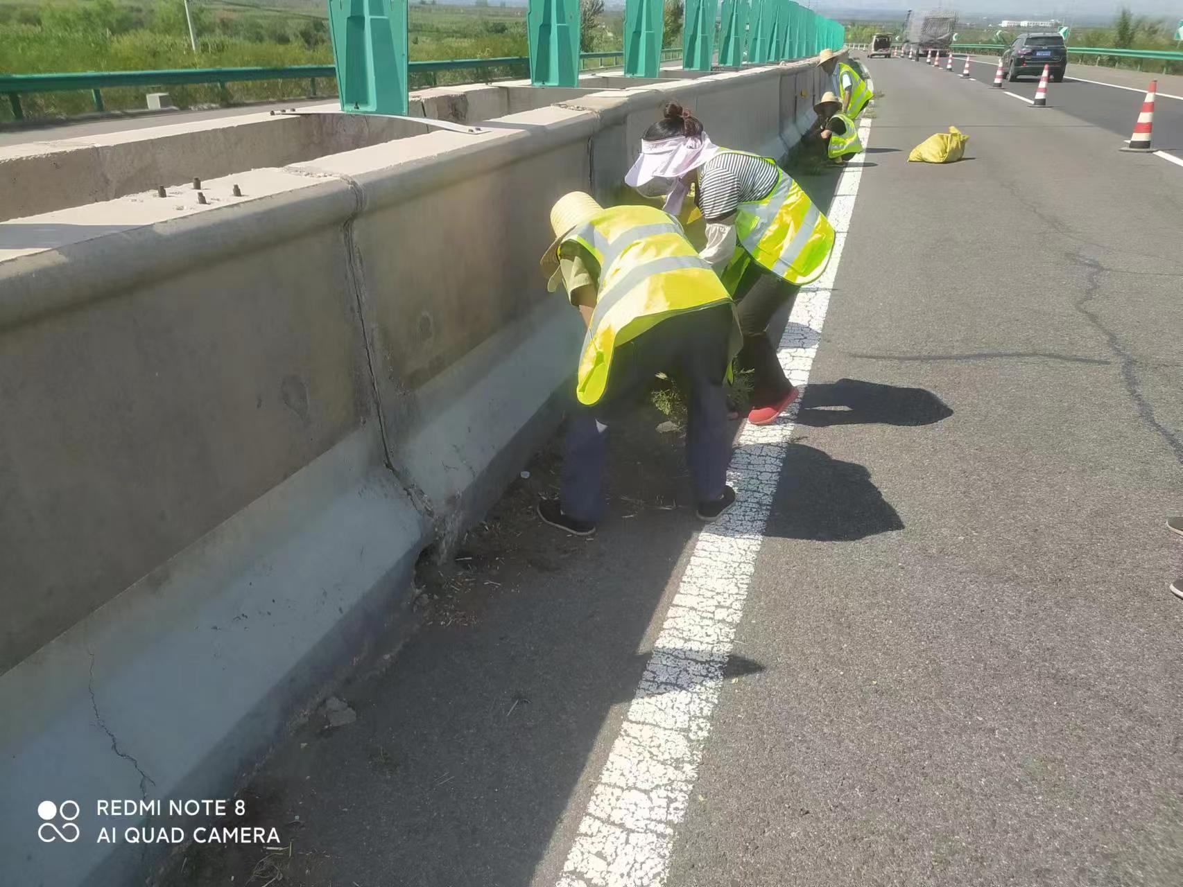 二是加强对管养路段基础设施的防范加固,毫不松懈做好防汛备汛各项工作。及时清理边沟、涵洞,使涵洞无淤积,路肩横坡顺适,边沟整洁、确保高速公路排水畅通,同时对雨后出现的坑槽病害,及时组织养护人员进行修补,遵守严格的修补工艺进行施工,杜绝前补后坏、修补不规则等现象发生,确保修补质量,加强道路保洁、边坡清理、绿化护管工作,确保路容路貌整洁,保持道路良好的运行环境。