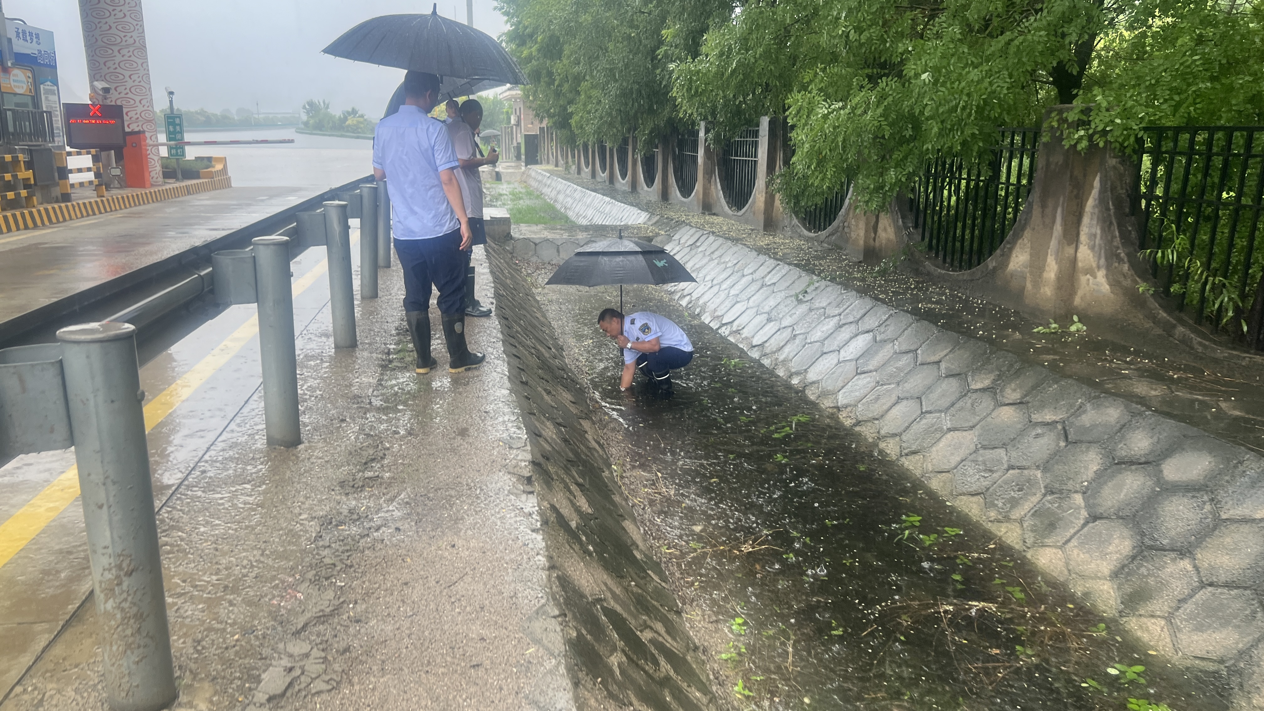二是突出重点,消除隐患。建立“雨前排查、雨中巡查、雨后核查”的全方位、立体式工作机制,针对收费岗亭下检查井、收费广场边沟、院区排水沟、宿办楼地下室等关键区域与环节,加大巡查力度与频次,发现问题立即整改,及时消除潜在安全隐患。