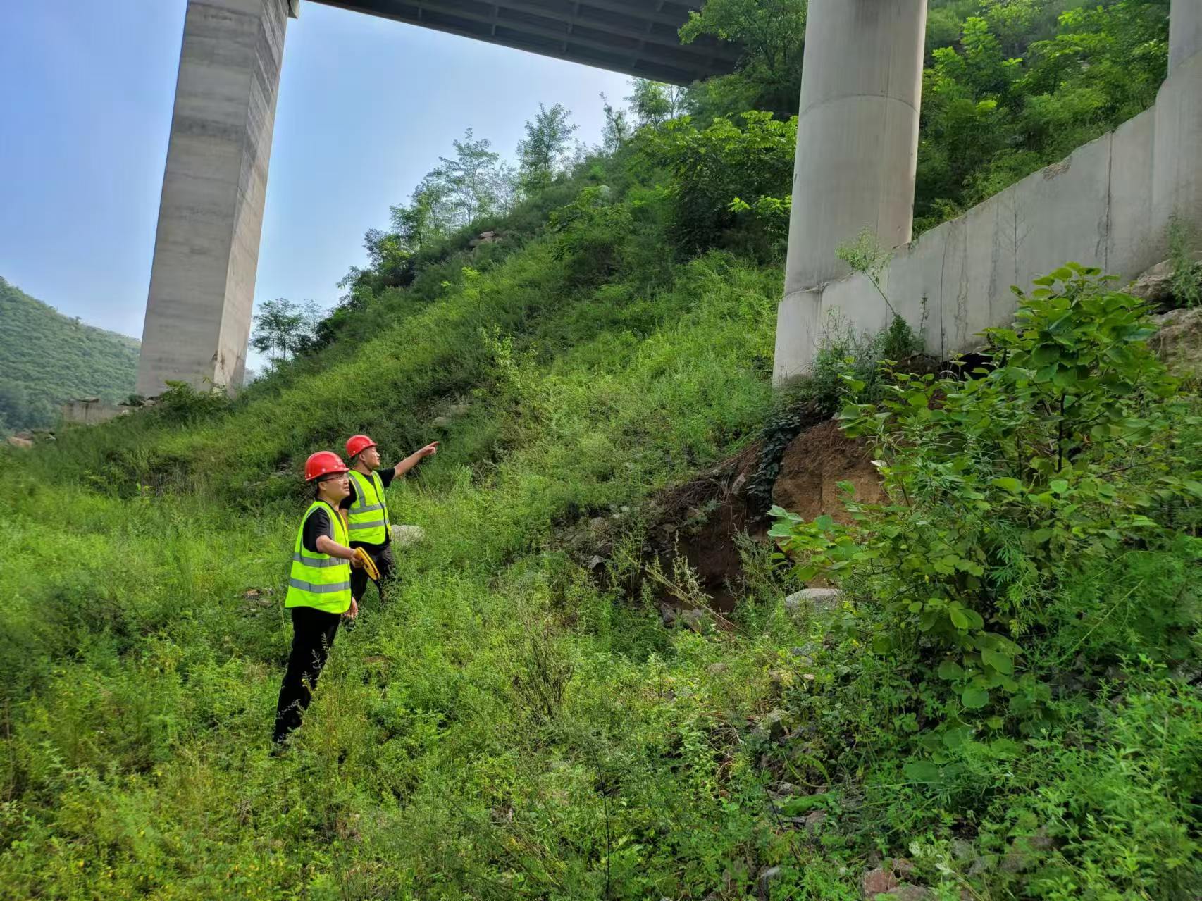 一是认真开展桥梁隐患大排查大整治。为全面掌握强降雨对桥涵的影响情况,巡查人员在雨停后第一时间出动,对沿线桥涵逐一进行全面、细致的摸底排查。巡查人员徒步到达数十米高的桥下,勘察河道水位增长情况、雨水冲刷桩基情况,测量受损范围,统计病害项目形成工作台账。20多天以来共排查大桥123座,其中跨河桥梁12座,发现个别桥梁桥下桩基包裙冲毁、挡墙冲毁、桩基裸露等病害5处,现均已上报运营管理部协调设计单位研究治理方案进行处治。