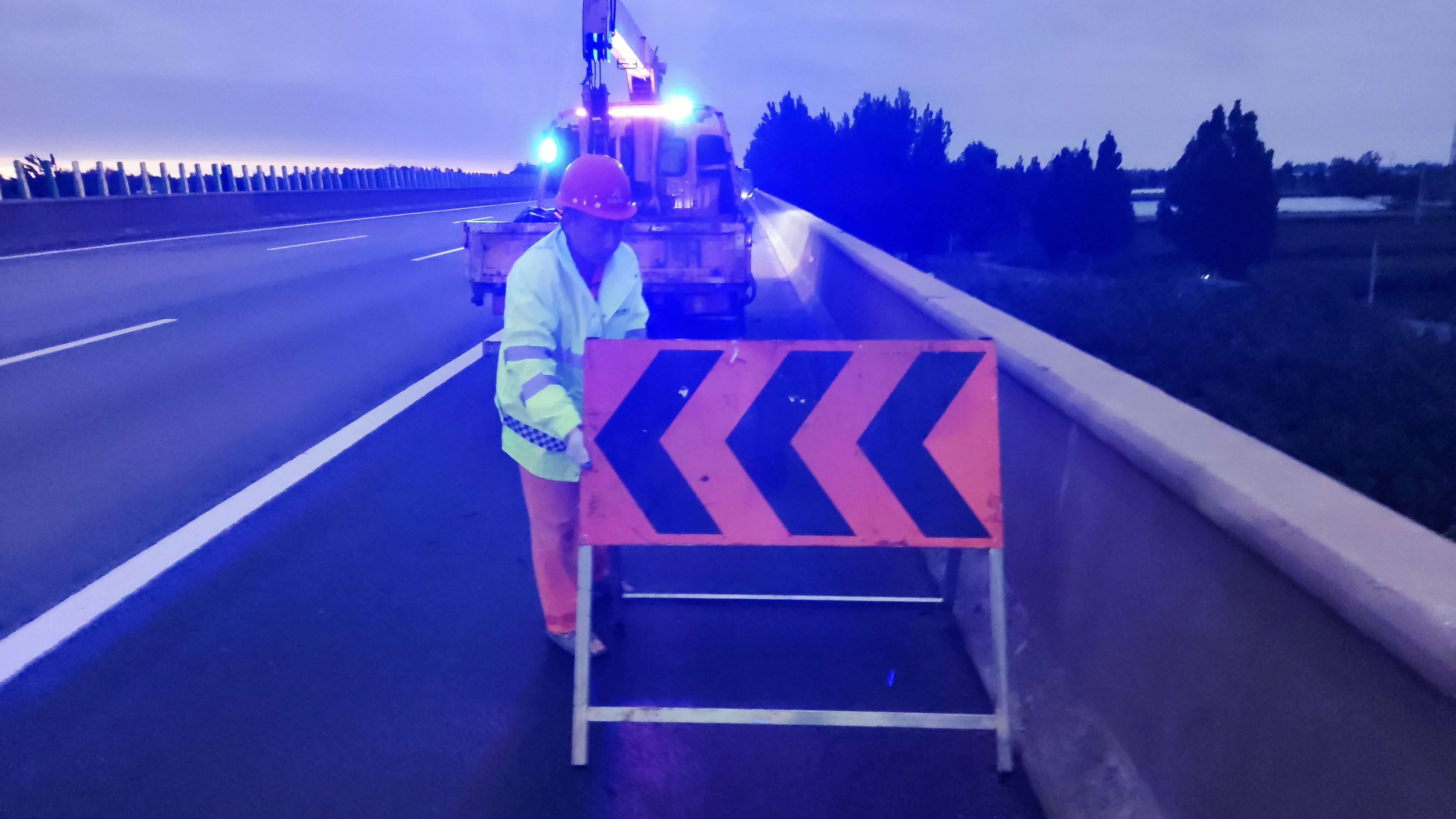 8月26日傍晚,衡水分中心饶阳养护队养护辖段突降暴雨。接养护班组通知,大广高速滹沱河特大桥和幸福渠大桥桥面等位置因降雨出现坑槽需紧急处置。