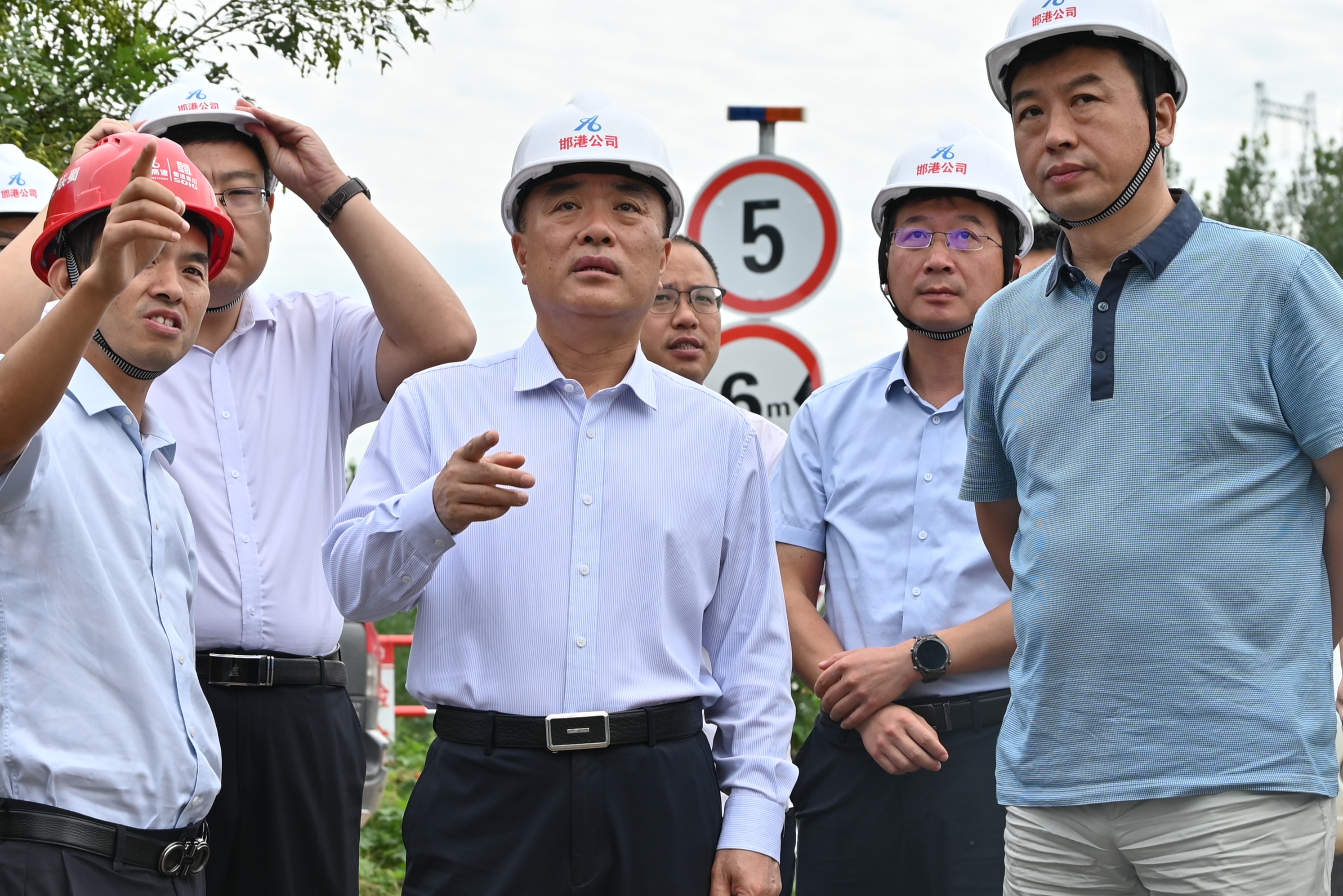 杨荣博首先到土建一标南运河特大桥、大屯枢纽互通等控制性工程实地察看工程进度,现场听取了邯港公司、恒质集团和施工、监理单位关于工程进展情况、存在的主要问题和下步施工计划等工作汇报,对当前工程建设进展给予充分肯定,并对后续工作提出了指导性意见。他指出,各参建单位要进一步提高政治站位,增强责任感、使命感、紧迫感,抢抓施工“黄金期”,全力冲刺2024年度建设任务。