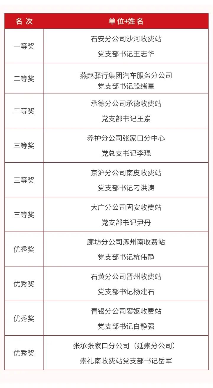 董广强调,希望各基层党支部书记围绕六个方面开展工作、发挥作用,助力集团第二次党代会绘就的蓝图变为美好现实。一是旗帜鲜明讲政治,以“小基点”筑牢“大格局”,把提高政治能力作为履职第一位要求,以实绩实效践行对党绝对忠诚。二是解放思想转观念,以“小视角”体现“大视野”,不断推动党建工作思路创新、方式方法革新,争创更多带有国企特点、高速特征、集团特质的基层党建“样板”工程,打造河北高速金字招牌。三是严抓善管带队伍,以“小舞台”释放“大能量”。深刻认识自身身处“承上启下”的关键位置,不断增进所属职工对集团改革发展各项政策的情感认同,为集团改革发展提供强大组织和队伍保障。四是真抓实干优作风,在“小突破”中实现“大作为”,把担当实干作为价值追求,让主动担当、狠抓落实成为推动党的建设和改革发展最响亮的旋律、最鲜明的风向标。五是勤勉履职讲奉献,以“小窗口”展现“大担当”,要团结带领广大干部职工踊跃参与到集团新一轮改革发展的浪潮中,在保通保畅、路域环境美化、服务品质提升等方面下真功夫,锲而不舍打造人民满意高速。六是遵规守纪作表率,以“守小节”涵养“大品格”,要持续强化作风建设,引领带动身边职工育正气、扬清风,做一名组织信任、党员认可、职工拥护的党支部书记。